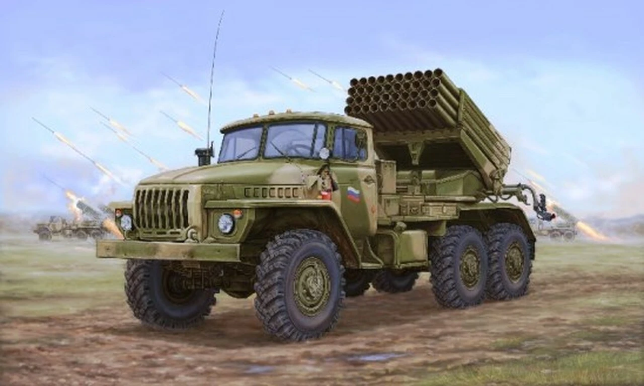 The BM-21 Grad is a Russian truck-mounted 122mm multiple rocket launcher developed in the early 1960s. Several other countries have copied it or developed similar systems. The BM-21 122mm multiple rocket launcher (MRL) system entered service with the Soviet Army in 1963 to replace the aging 140mm BM-14 system. It consists of a Ural-375D 6 x 6 truck chassis fitted with a bank of 40 launch tubes arranged in a rectangular shape that can be turned away from the unprotected cab. In 1976, the BM-21 was mounted on the newer Ural-4320 6 x 6 army truck.