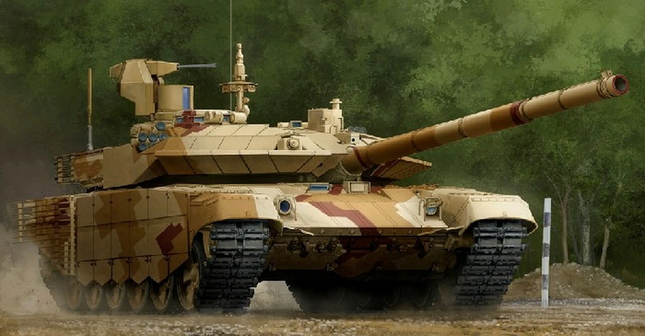 To further improve the T-72’s export prospects and its chances of being selected as Russia’s sole production MBT, the T-80U’s more sophisticated fire control system was added to produce a vehicle designated T-72BU. The T-90 was developed by the Kartsev-Venediktov Design Bureau at the Uralvagonzavod factory in Nizhny Tagil. The production model is based on the T-72BM, with some added features from the T-80 series. The T-90 with an 840hp (630Â kW) engine went into low-level production in 1993, based on a prototype designated T-88. It features a new generation of Kontakt-5 explosive reactive armor on its hull and turret. Of conventional layout, the T-90 represents a major upgrade to every system in the T-72, including the main gun. The references to a T-90E appear to be unsubstantiated. The T-90 is fitted with a three-tiered protection system: the first tier is the composite armor in the turret, the second tier is third generation Kontakt-5 ERA and the third tier is a Shtora-1 countermeasures suite.