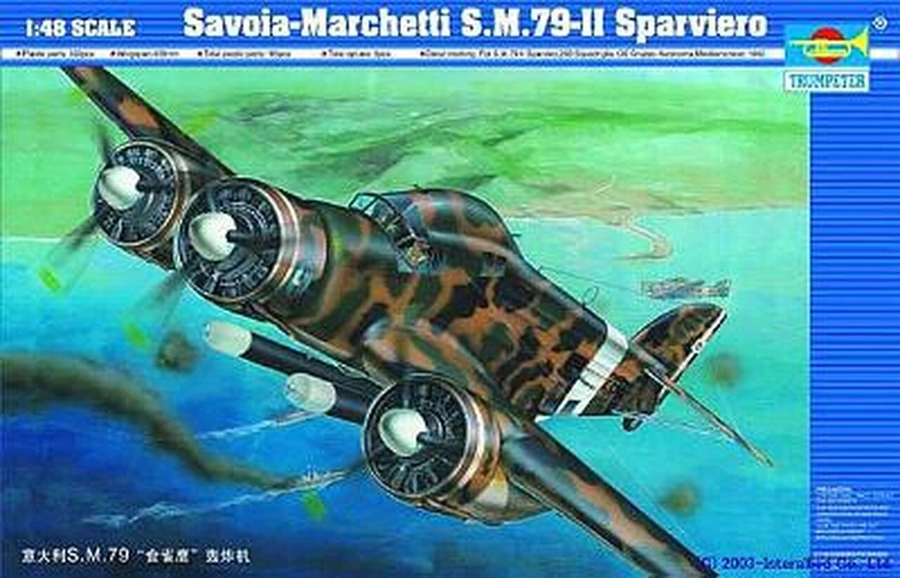 The S.M.79 was the most successful Italian multi-role medium bomber of World War II. Developed from a civil airliner, the first Sparvieros entered service with the Regia Aeronautica in late 1936, just in time to fly combat over Spain with the Aviacion Legionaria, the Italian contingent fighting in support of the Nationalists. Its performance drew favorable comments from both sides, leading to a succession of export orders. An effective torpedo bomber as well, the S.M.79 served the air forces of Brazil, Iraq, Yugoslavia, Romania and Spain, some right up to the end of the war. The Romanians flew them on the Russian front from 1941 to 1944, an unprecedented record for an aircraft designed in the early 1930s.Though known as a tri-motor, several versions were built as twin-engine aircraft using a number of different power plants, including Junkers Jumo 211D 1,220hp in-lines. Regardless of the version, its handling pleased most pilots and its ability to come home with extensive damage endeared it even more. Used throughout North Africa and the Mediterranean until the Italian surrender in September 1943, the Sparviero remained flying with both the Italian forces fighting alongside the Allies and the surviving pro-Nazi units.