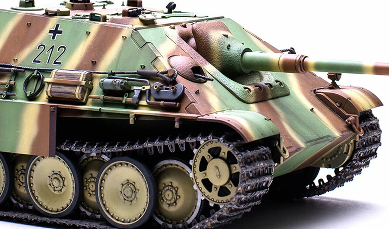 This model kit has a total of 975 parts. With the optional parts included in the kit, you have the options to build a Jagdpanther Ausf. G1 tank destroyer from different time periods.