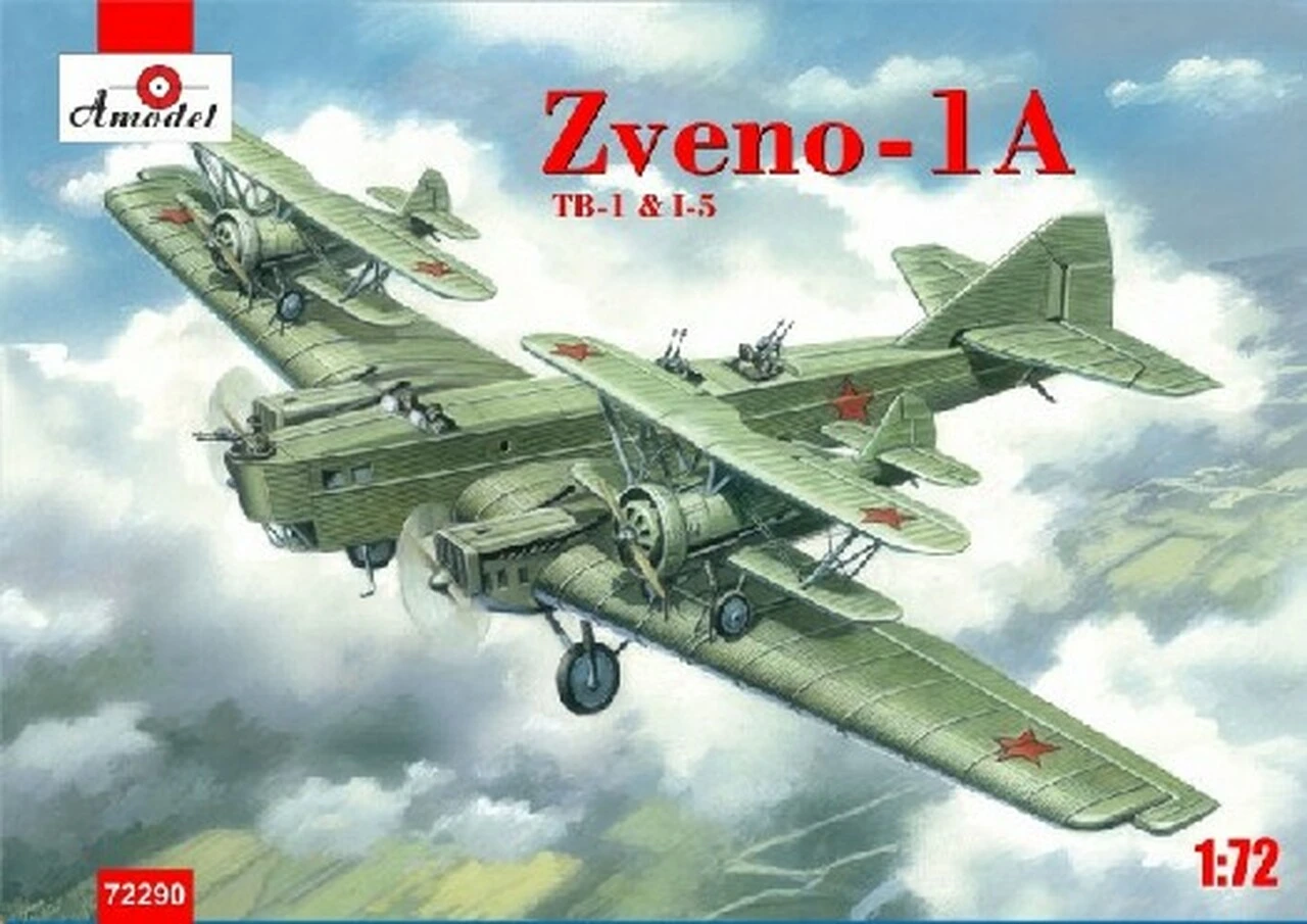 Soviet Zveno-1A TB-1 Mothership Aircraft w/2 I-5 Soviet Fighters 1/72 A-Model