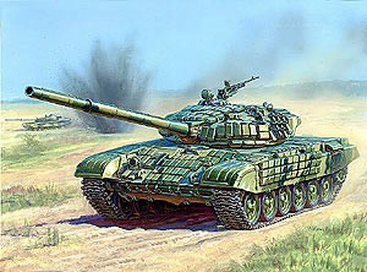 Equipped with an improved 125mm smoothbore gun, this variant entered service in 1985. Stabilizers enable exact firing when the T-72 is in motion. Additional armament consists of the 9K120 “Svir” guided rocket system and 227 pieces of reactive armor charges, half of them attached to the turret.