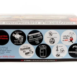 Introducing the Garage Accessory Series from the KATs at AMT! Featuring all-new tooling, these kits will add some dynamic dyno-mite detail to any 1/25 scale automotive diorama! The first two sets are “Weekend Wrenchin’” and “Tip Shop Shop.” Wrenchin’ features a giant tool box tower, welding tanks, saw horses, shelving, tools and more! Tip Top Shop includes two deluxe figures, a workbench, compressor, vintage vending machine, jacks ’n stands, oil cans and even a pay phone! Each set comes in retro-styled packaging and includes a large full-color decal sheet with equipment markings, signage, logos and even name patches for the figures. Model car displays will come alive with the Garage Accessory Series from AMT!