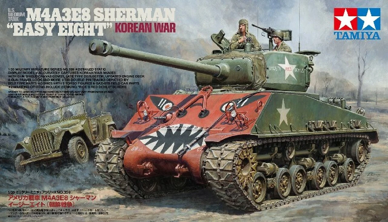 This model assembly kit depicts the Korean War variant of the M4A3E8 “Easy Eight” Sherman. This kit variant includes new parts!