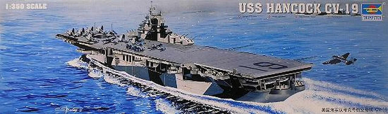 Hancock was the first of the βlong hullβ Essex class carriers to be completed, being commissioned in April of 1944. Hancock first saw action with the Third Fleet in attacks on Formosa, the Philippines, Okinawa, and Japan. In 1945 the carrier took part in attacks on Indo-China, Okinawa, and Japan itself. Damaged in an aircraft explosion in January 1945 and again by kamikaze strike in April, Hancock returned to take part in Magic Carpet operations. She was withdrawn from service in 1947, and after modernization and further service, was scrapped in 1976. Hancock was awarded the Navy Unit Commendation and received four battle stars for service in World War II.