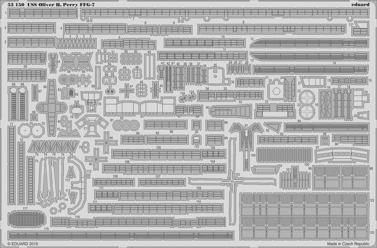 Photoetched detail set for Academy’s 1/350th scale USS Oliver H Perry