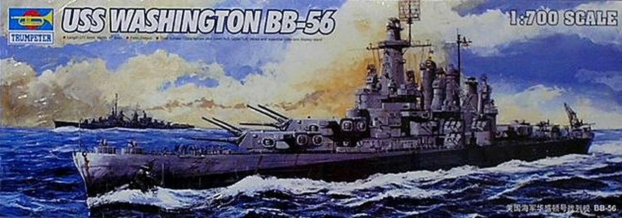 USS Washington BB-56 was laid down in June 1938 at the Philadelphia Navy Yard and commissioned in May 1941. In December Washington became the flagship for Rear Admiral John W. Wilcox, Commander of Battleship Division 6, and Commander of the Atlantic Fleet battleships. In April 1942 she joined the British Home Fleet. The force got underway to engage in reconnaissance for the protection of the vital convoys running to Murmansk. In September 1942 Washington was put to sea, bound for a rendezvous with TF-17 and with the force formed around the aircraft carrier Hornet. In the fourth battle of Savo Island, Washington engaged Kirishima in the first head-to-head confrontation of battleships in the Pacific War. In seven minutes, tracking by radar, Washington sent 75 rounds of 16-inch and 107 rounds of 5-inch at ranges from 8,400 to 12,650 yards, scoring at least nine hits with her main battery and about forty with her 5-inchers and silencing the enemy battleship in short order. USS Washington earned 13 battle stars during World War II in operations that carried her from the Arctic Circle to the western Pacific.
