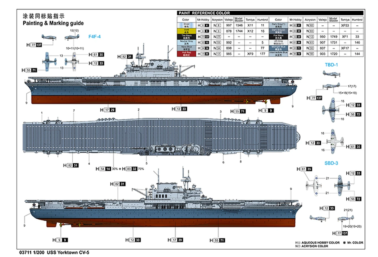 – Includes 5 each F4F-4, SBD-3 and TBD-1 aircraft