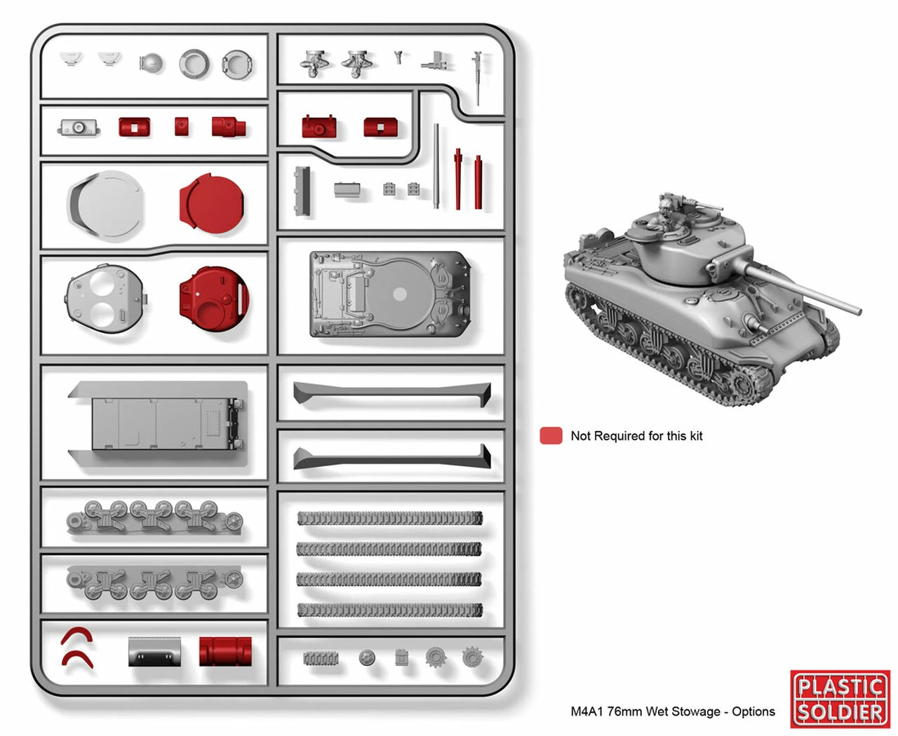 Easy Assembly plastic injection moulded 15mm Allied M4A1 76mm Wet Stowage Sherman tank. Five vehicles in the box and each vehicle comes with 2 commander figures – UK or US