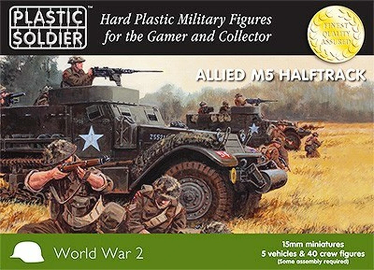 WWII Allied M5 Halftrack (5) and Crew (40) 15mm Plastic Soldier