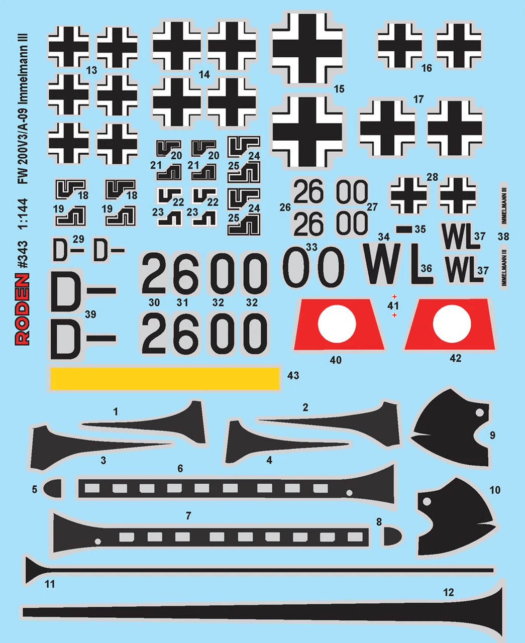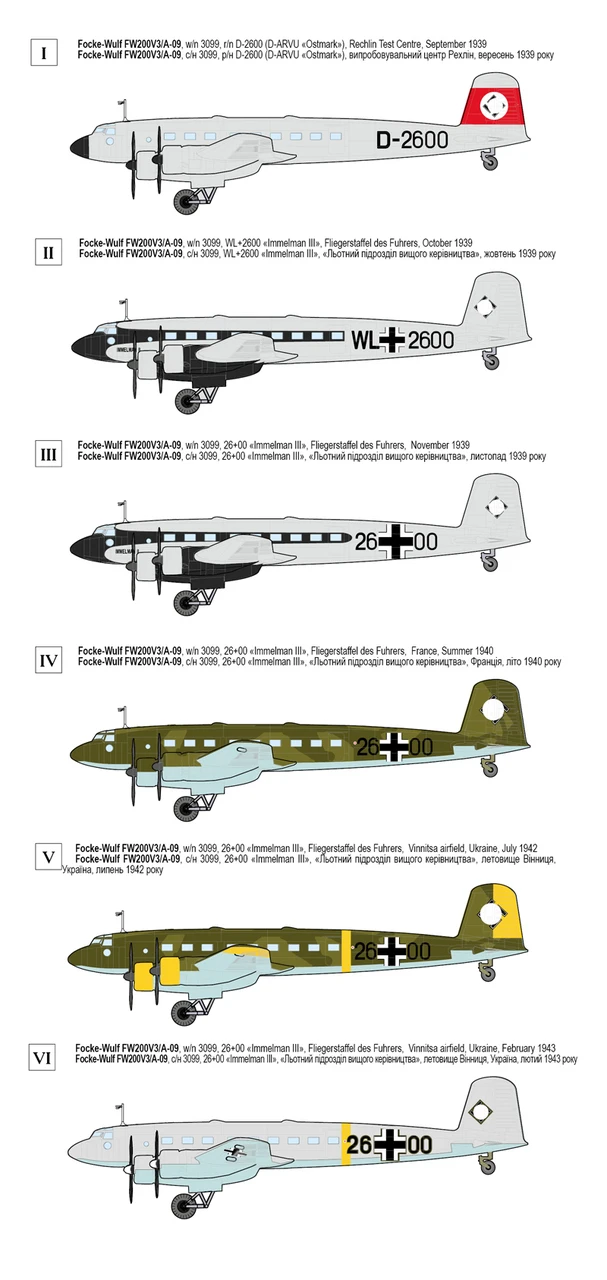 WWII Focke Wulf Fw 200V3/A-09 Condor “Immelman III” German Aircraft 1/144 Roden