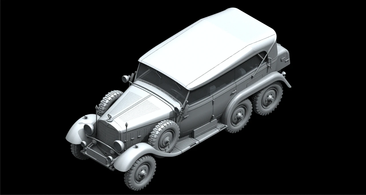 The three-axle off-road passenger car G4 was designed by Daimler-Benz in 1934. This car featured an 8-cylinder engine with 100 or 110hp and six passenger seats. The car was intended for the German Army but it appeared very expensive and too complicated for mass production. Only 72 were produced up to 1939, and these were mainly used by the highest state and military authorities in Germany.