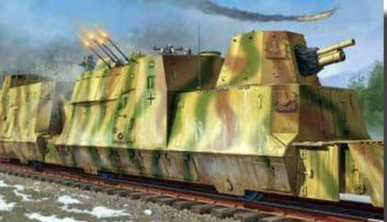 Type BP42 is an armored train with four guns, the armament following Russian and Polish examples. Each gun was mounted on a separately built ten-sided rotating turret in order to avoid too-great losses from a direct hit. The two halves of the train, before and behind the locomotive, were identical and consisted of one artillery car with one 10cm le.F.H 14/19(p) gun, one command and infantry car and one artillery and anti-aircraft car with one 7.62cm F.K.295/l(r) and one 2cm anti-aircraft quadruple unit.