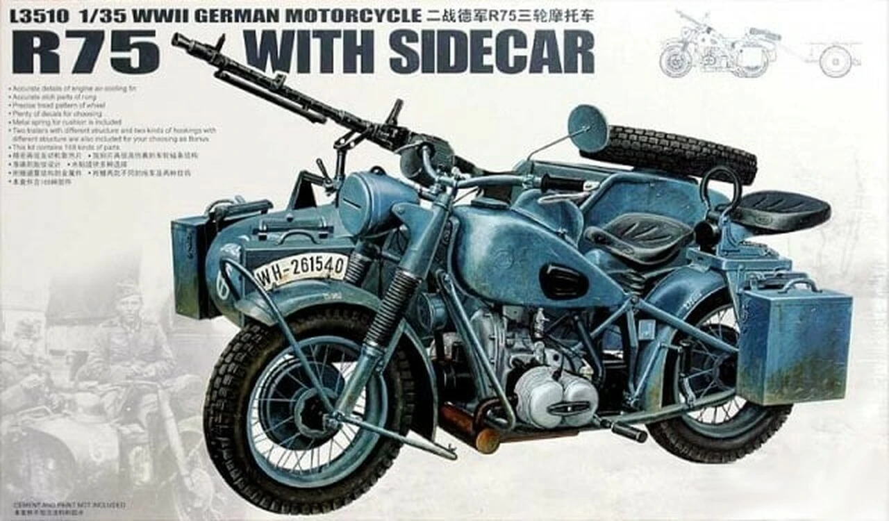 WWII German BMW R75 Motorcycle w/Sidecar 1/35 Great Wall Hobby