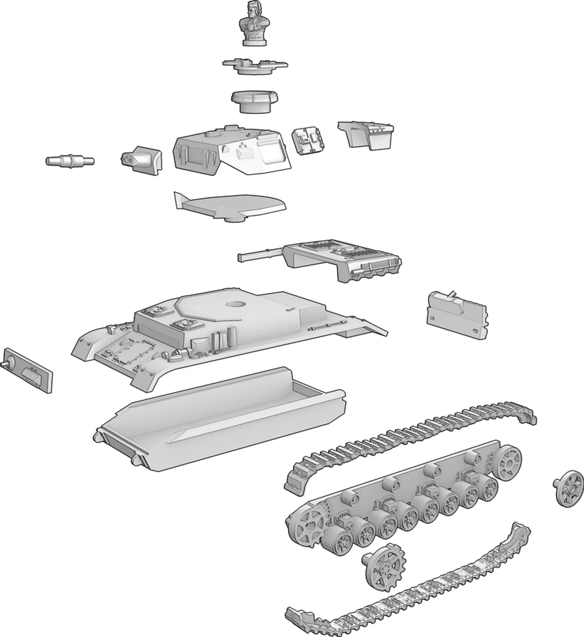 Easy Assembly plastic injection moulded 15mm German Panzer IV tank. Five vehicles in the box and each sprue gives options to build either a F1, F2, G or H version and comes with 2 commander figures
