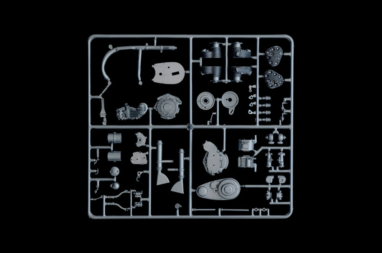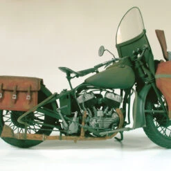 This impressive motorcycle, built in the late 30s to the requirements of the American Police forces, and, in limited quantities, for the civil market, was used during the 2nd World War also by the American armed forces. Very sturdy and reliable, this motorbike was used by the military Police for surveillance, and by couriers for rapid delivery of messages between front line units, thanks to its good road-holding and the performance of its powerful engine. Model when completed measures nearly 12″ long.