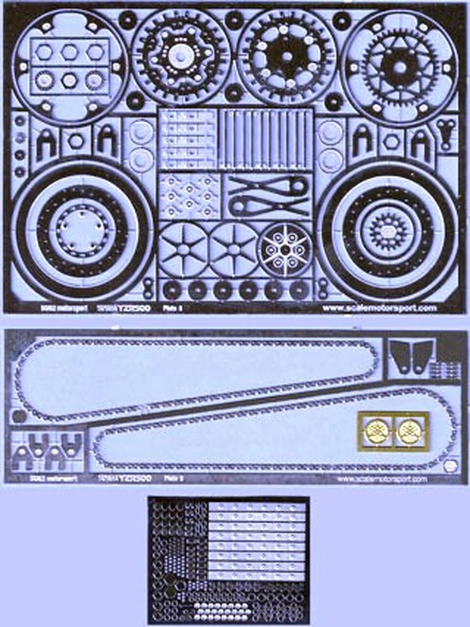 Designed for Tamiya Yamaha Red Bull & Tech 3 Motorcycle kit #14076 & 14078. Nickel Steel & Brass Photoetch Frets Contain: Front Brake Disc Detail, Chain Adjuster Detail, Handle Bar Details, Rear Brake Disc Vents, Rear Brake Detail, Chain Sprocket, Exhaust Pipe Brackets, Chain Adjustor Detail, Exhaust End Caps, Hose Clamps, Front Disc, Rear Brake Disc, Rear Brake Disk Ring, Chain Sprocket, Cylinder Head Details, Chain Adjuster, Chain, Small Sprocket Details, Brass Gas Tank Logos. Rubber Back Photoetch Sheet Contains: Hose Clamp Details, Cowl Pins, Exhaust Clamp Details, Hose Clamp Details, Small Sprocket Details, Exhaust Clamp Bolt Head, Front Brake Details, Rear Brake Details, Handle Bar Details, Speedometer, The Missing Link, Exhaust Clamp Washer, Sprocket Details