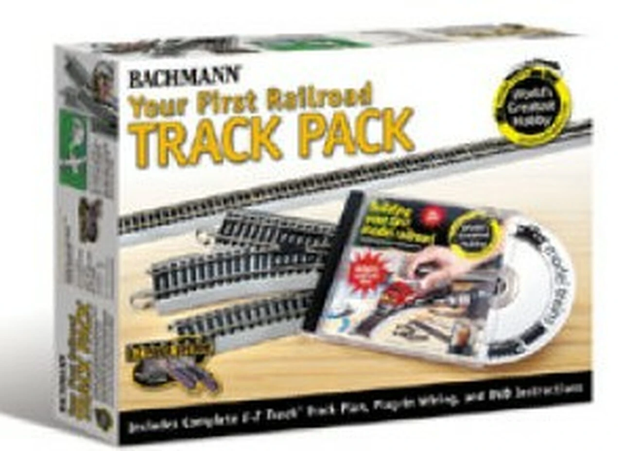 HO Scale. This 43-piece track pack has all the E-Z Track snap-fit track (with molded roadbed) you’ll need to build the layout featured on the enclosed DVD: “Building Your First Model Railroad” hosted by Michael Gross. Track pieces have nickel silver rails and black molded ties with realistic wood grain detail. Easy track assembly…no nails, screws, or special tools needed. Detailed printed instructions provided.